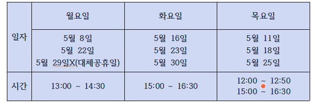 – 상담자료 이메일 제출 기간 : 5월 4일 ~ 5월 20일